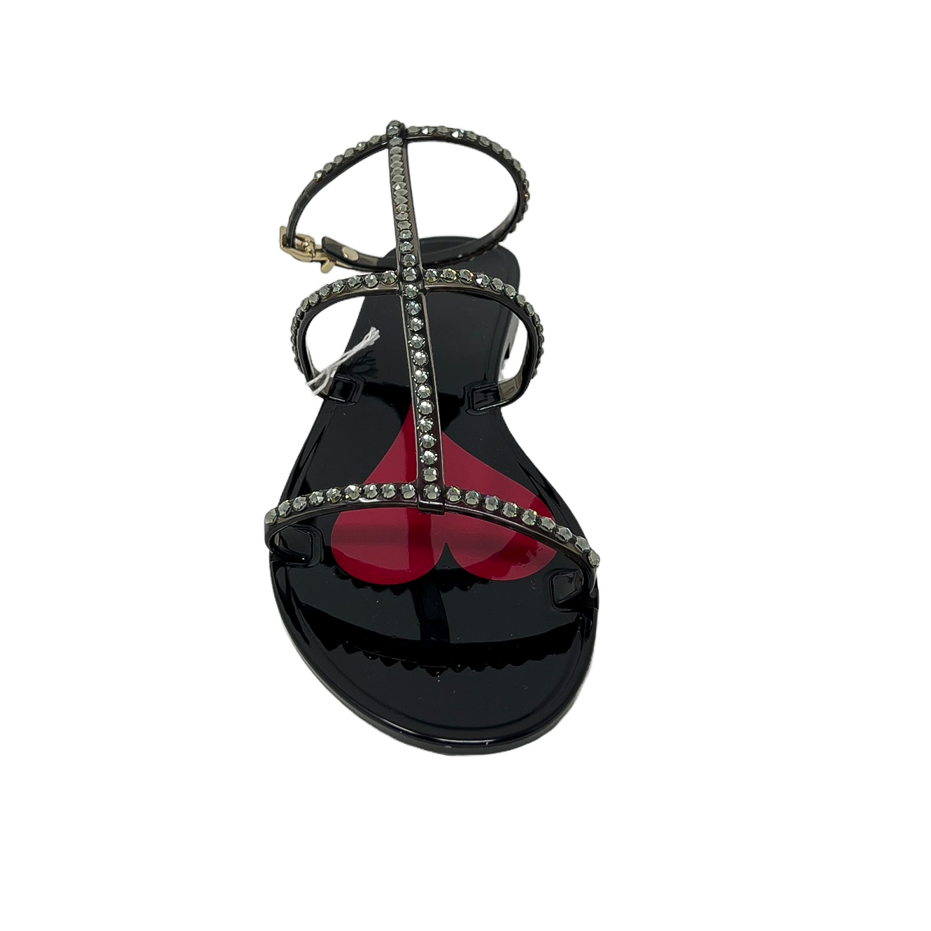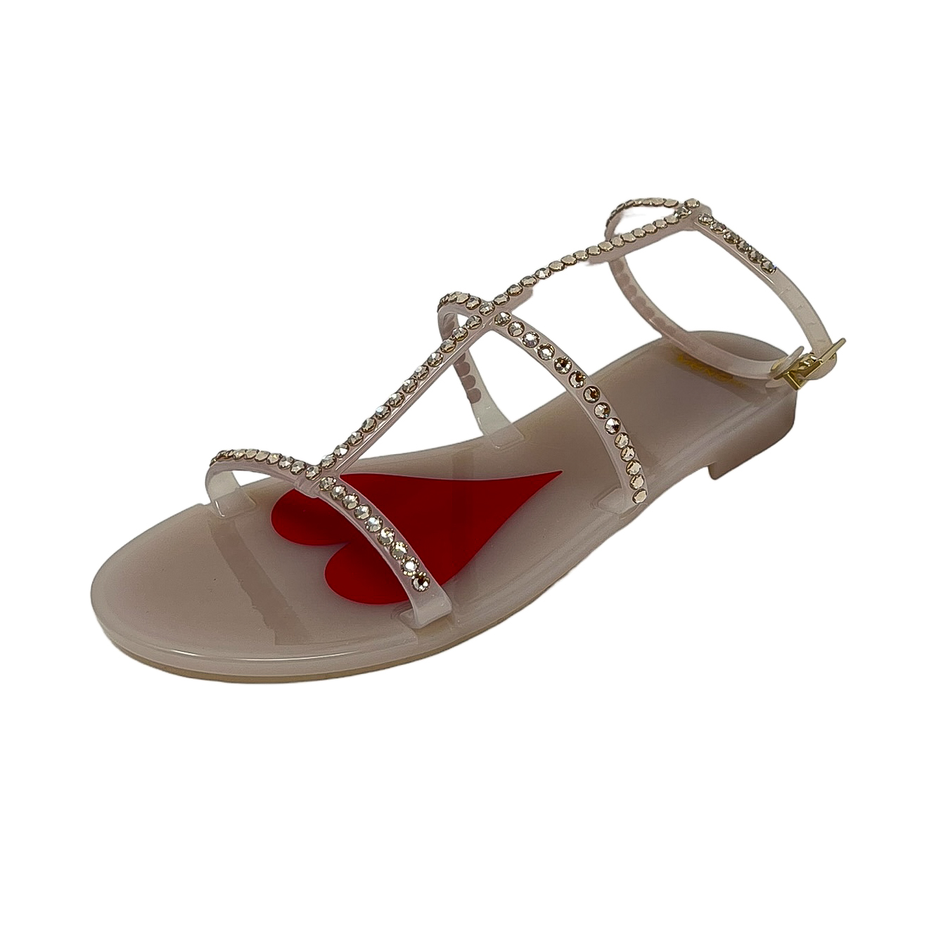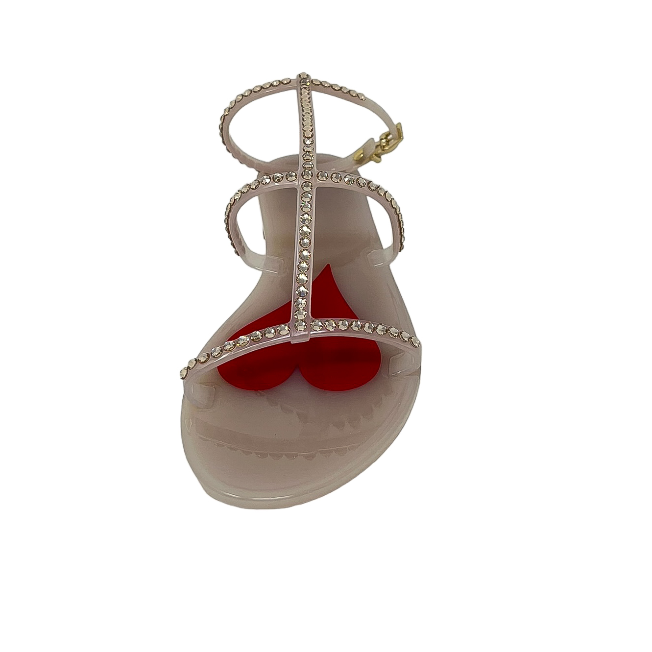 Sandalo in gomma nera o beige con veri Swarovski e cinturino che sale alla caviglia