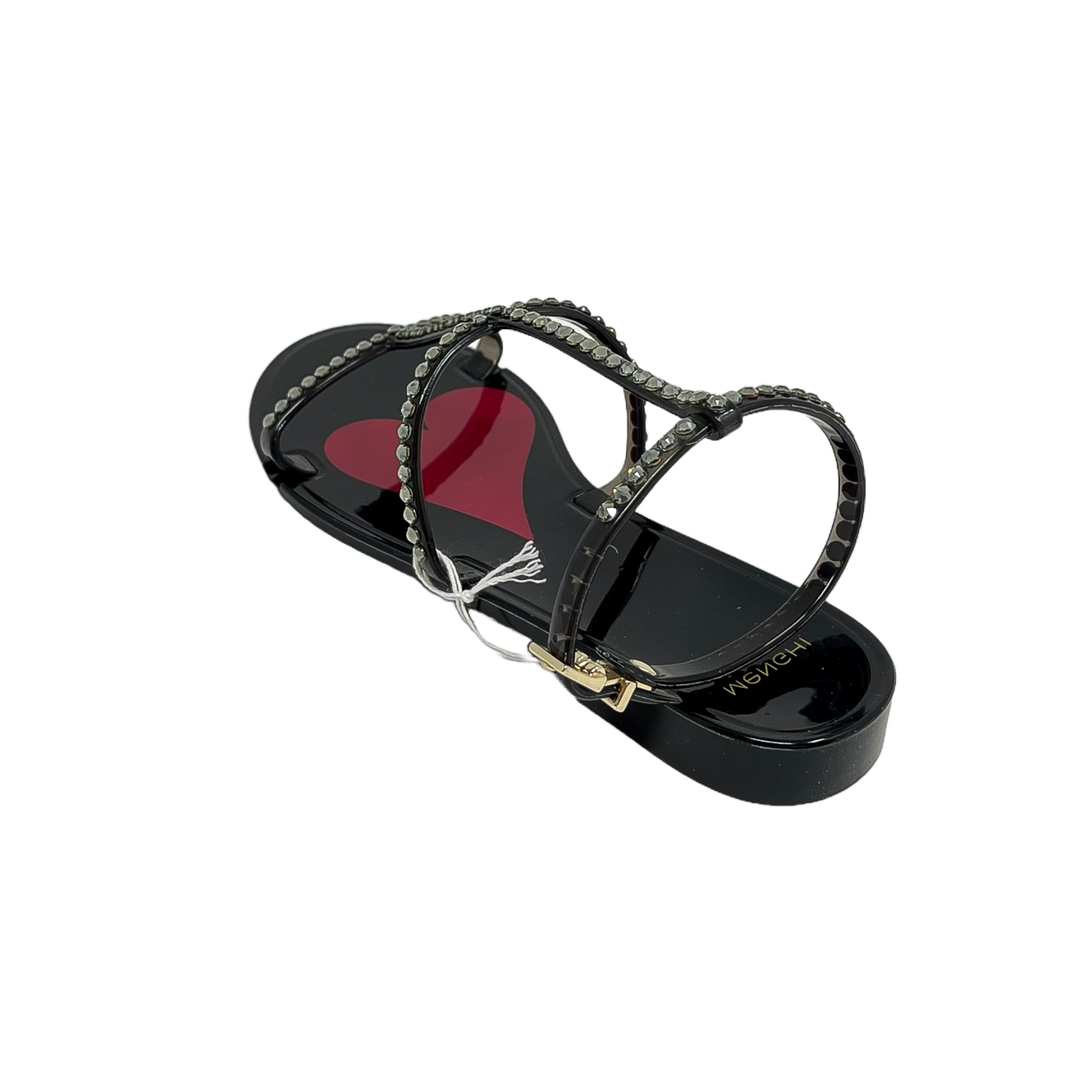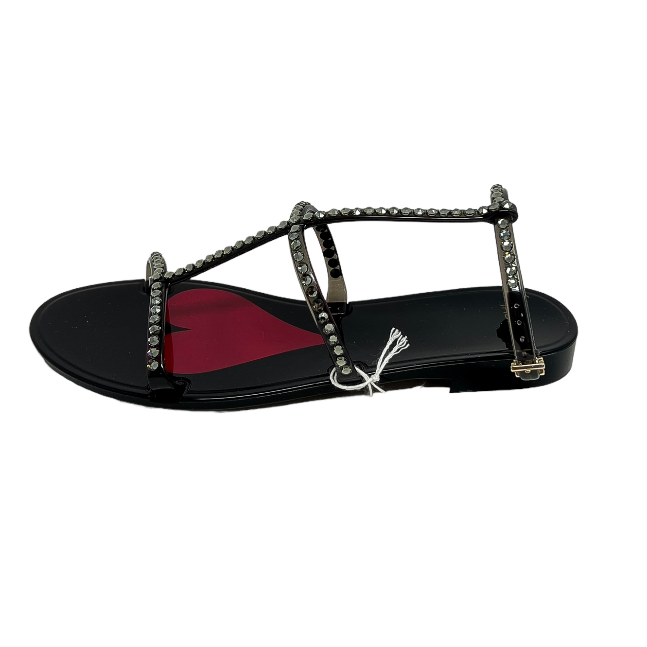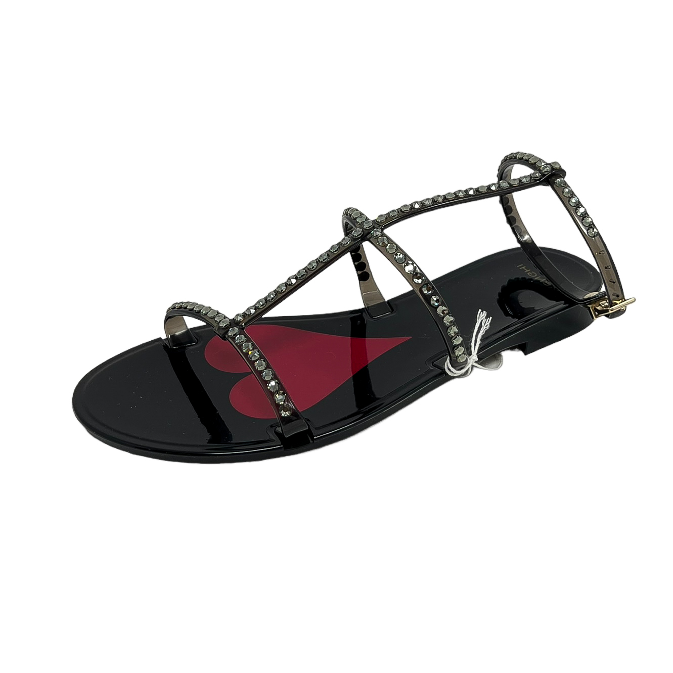 Sandalo in gomma nera o beige con veri Swarovski e cinturino che sale alla caviglia