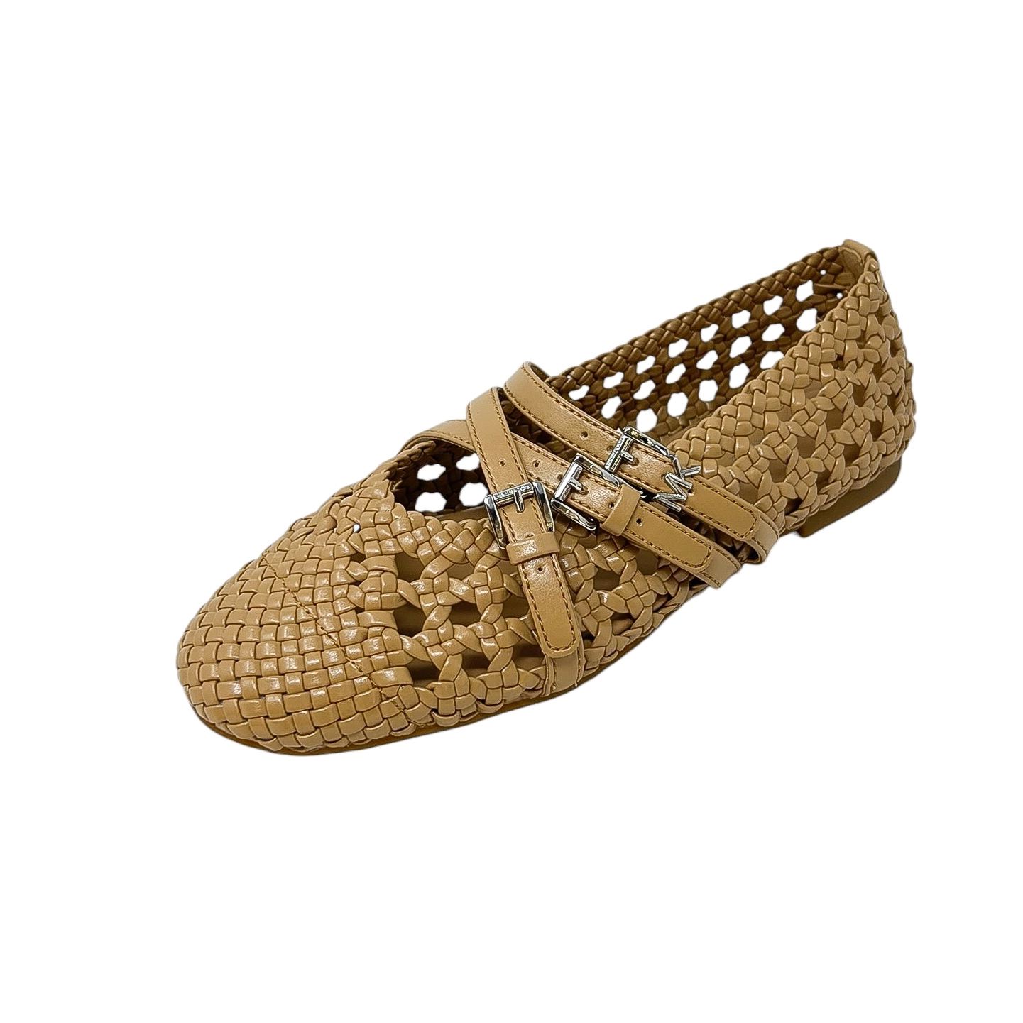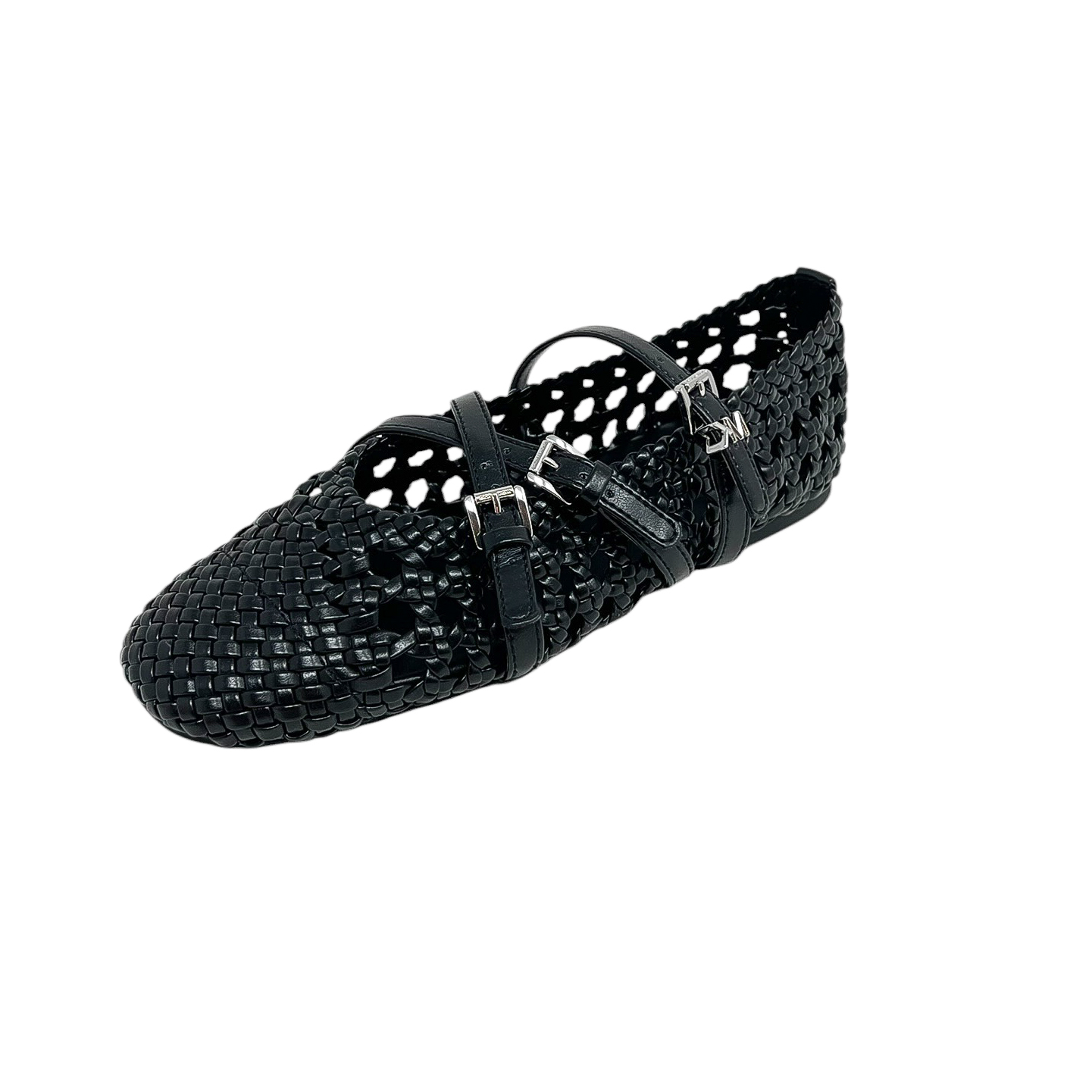Ballerina con cinturini effetto rafia cuoio o nera con cinturini