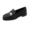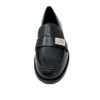 Mocassino in pelle nera con finta fibbia laterale argentata