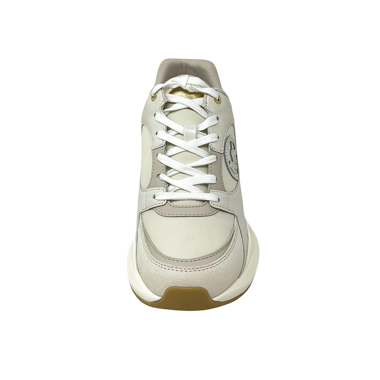 Sneaker in pelle e tessuto panna con suola di 4 centimetri