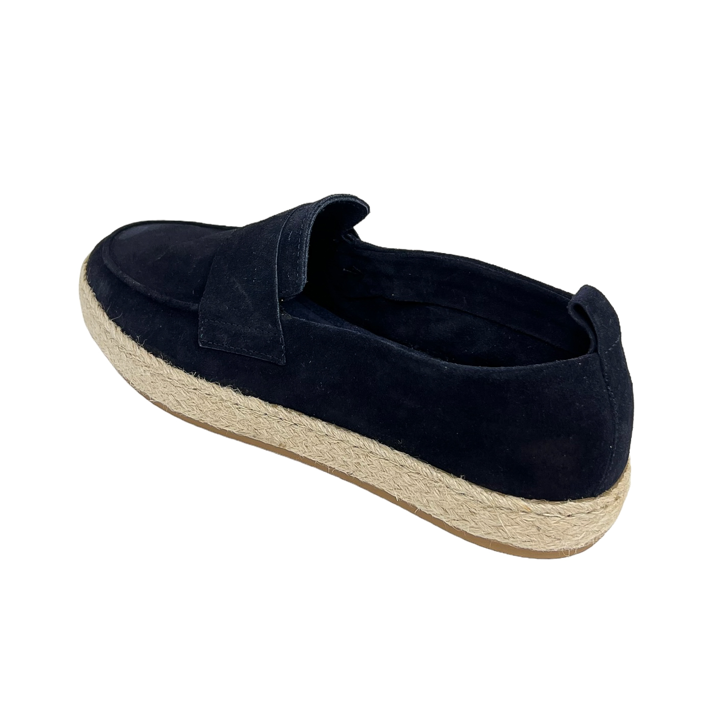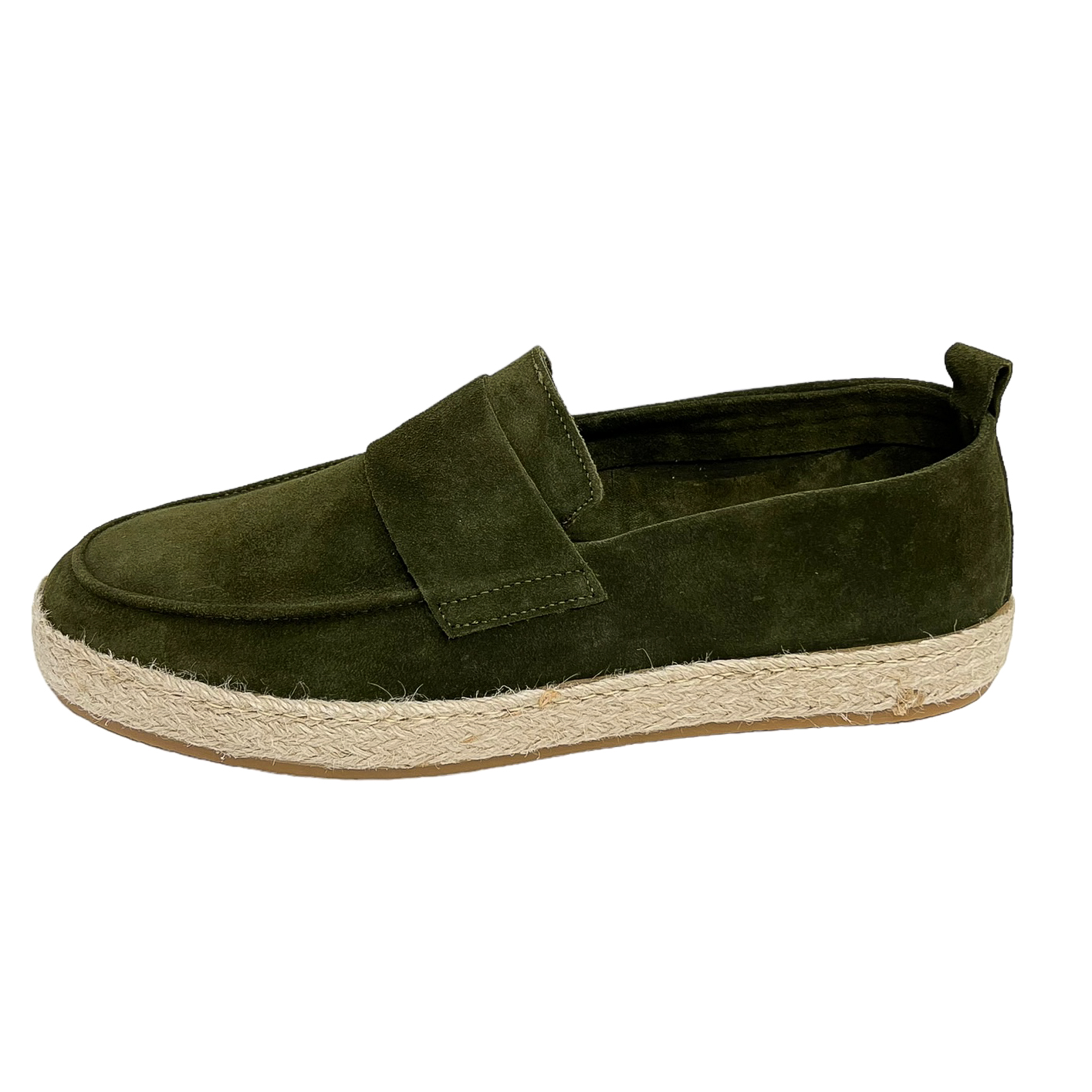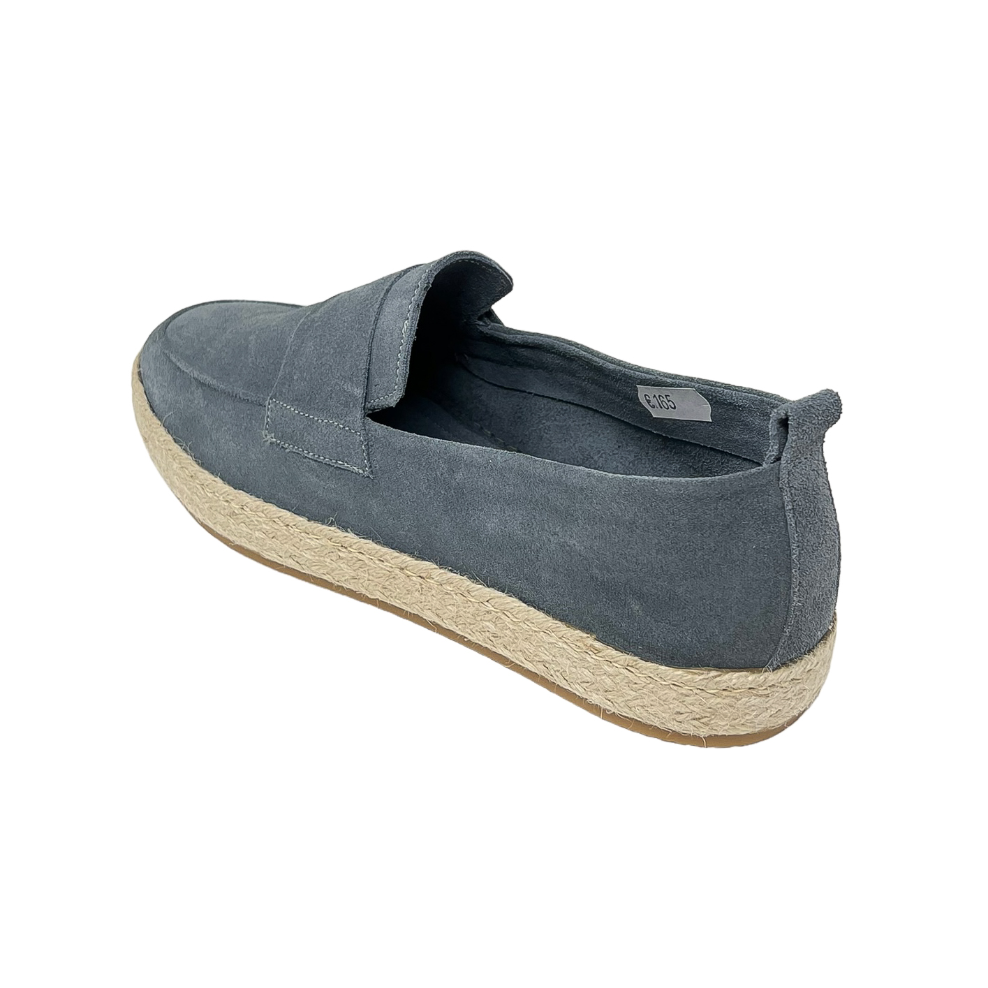 Mocassino con fascetta in camoscio avio, blu o verde con suola in corda
