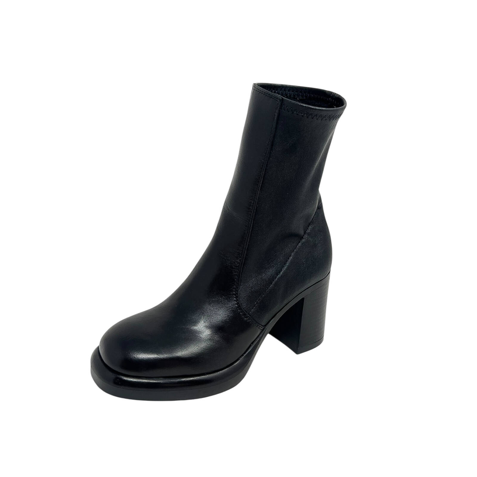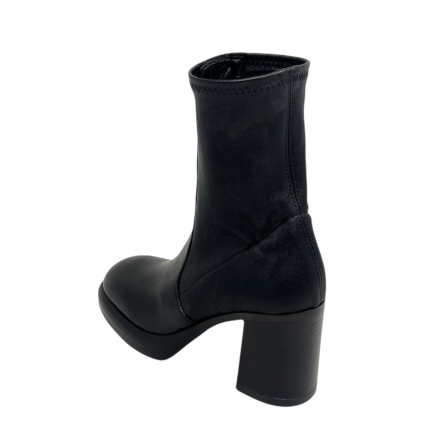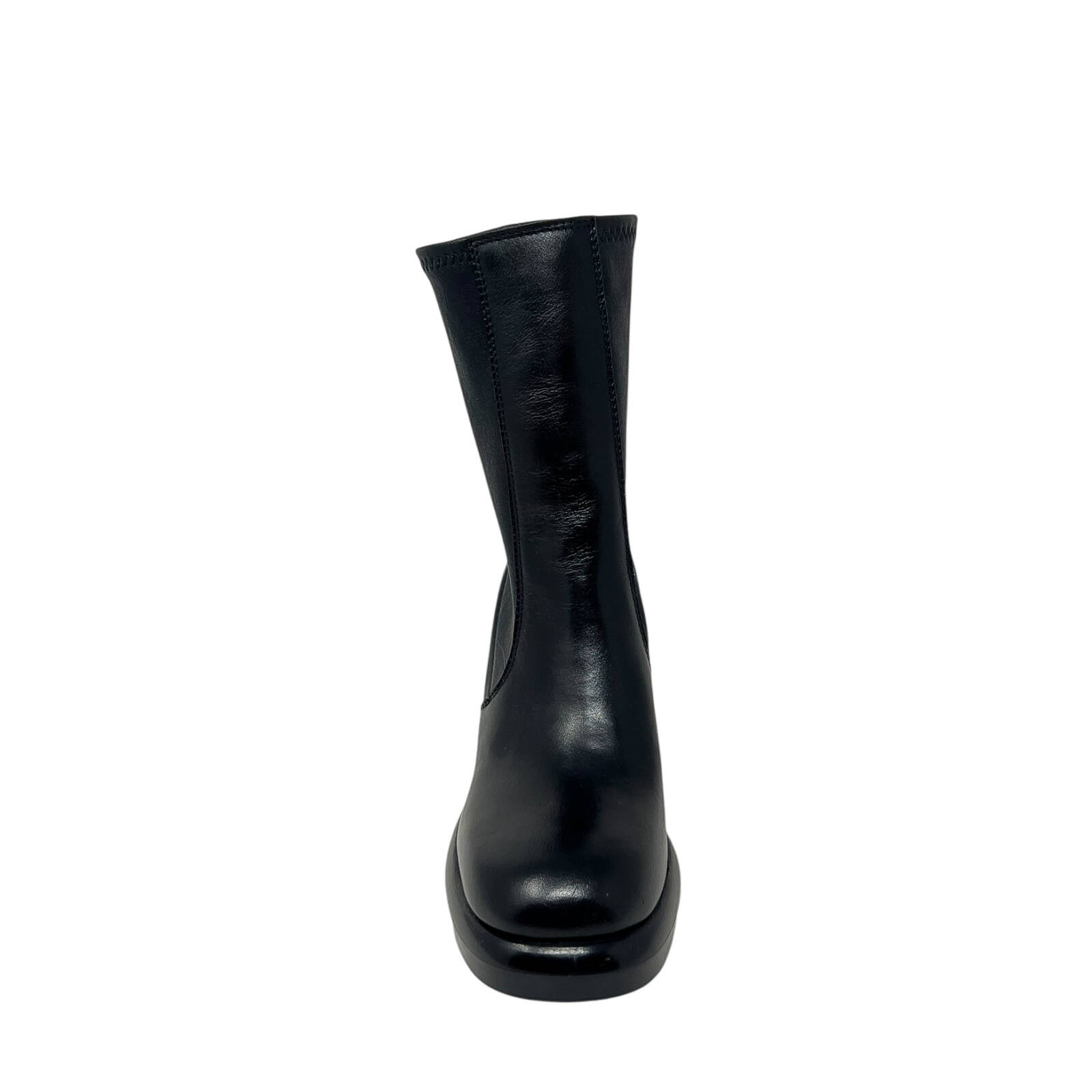 Trochetto elasticizzato nero con punta squadrata e tacco grosso di 8 centimetri con platform