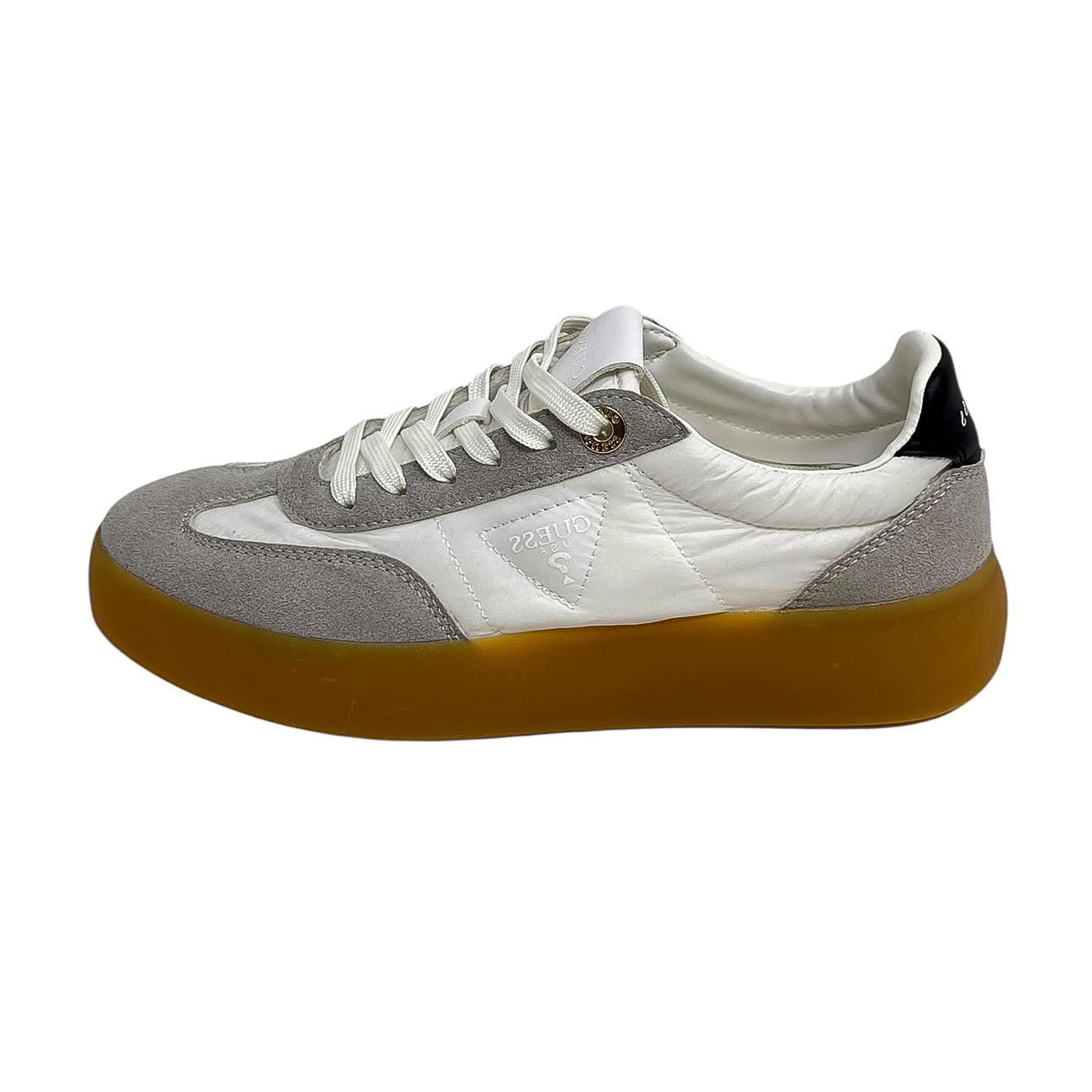 Sneaker running in tessuto bianco/glitter argento- sfumato azzurro – bianco con dettagli dorati.Suola di 2 centimetri