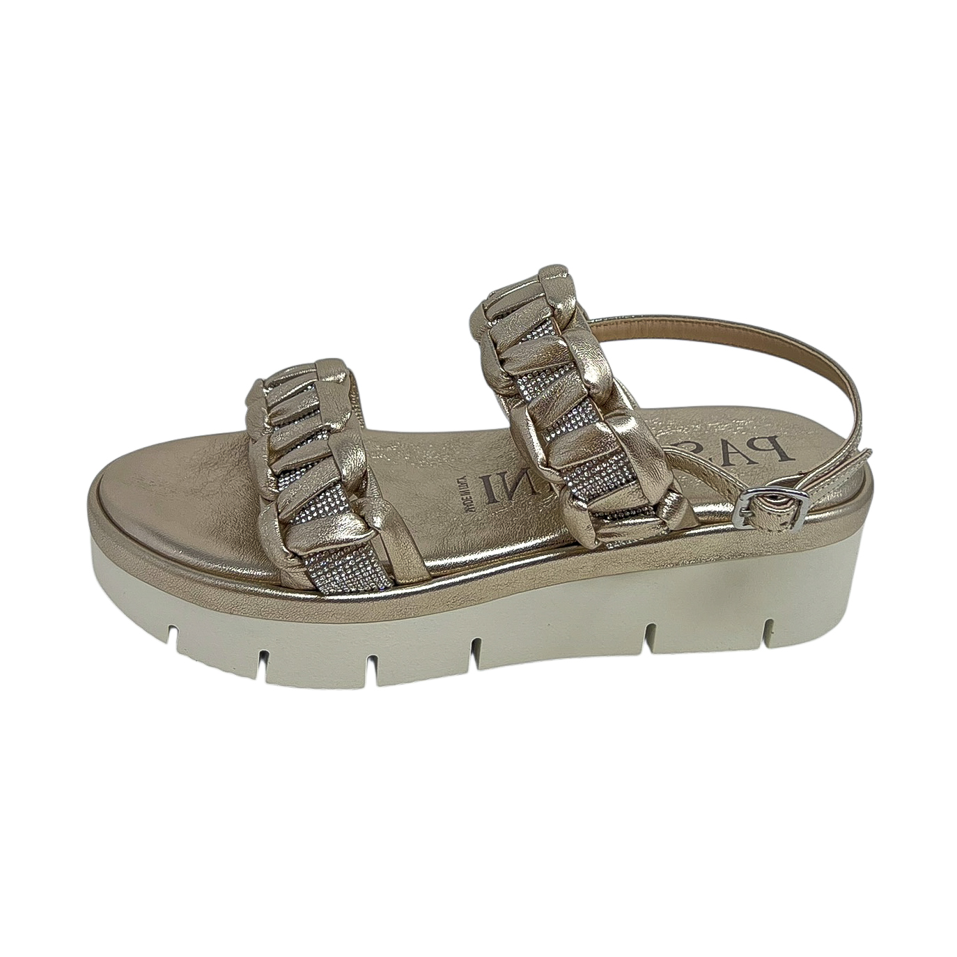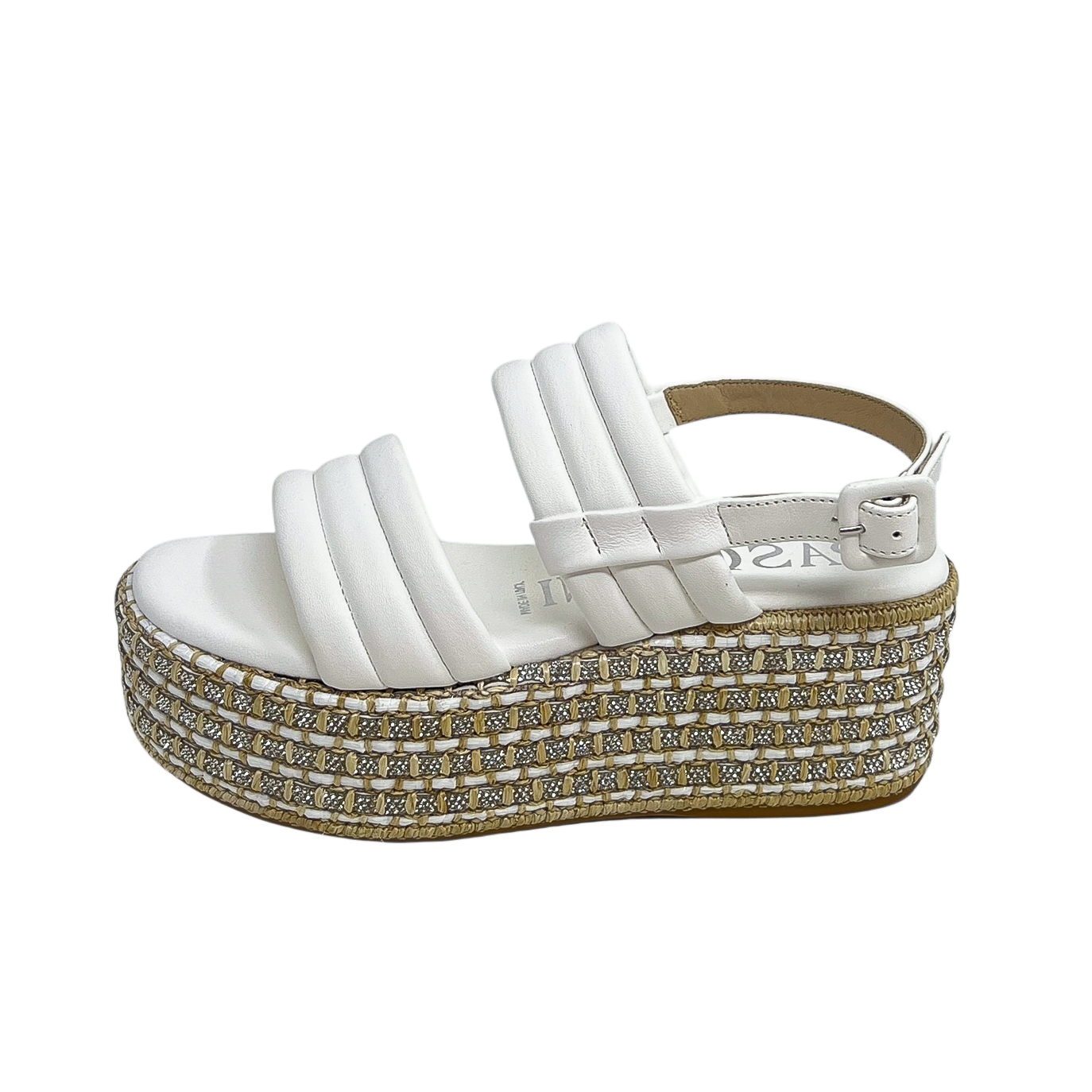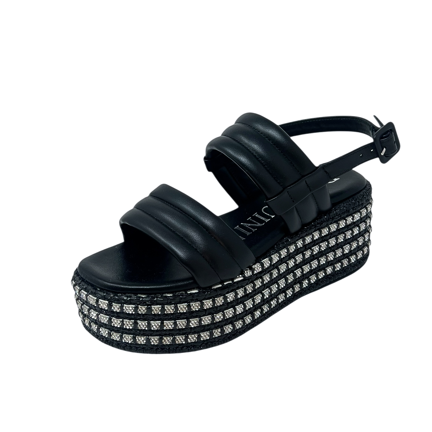 Sandalo con due fasce in pelle imbottite bianco o nero con zeppa in strass di 5 centimetri