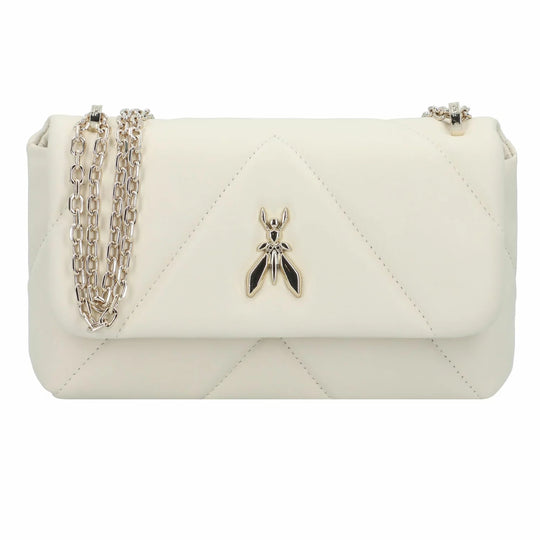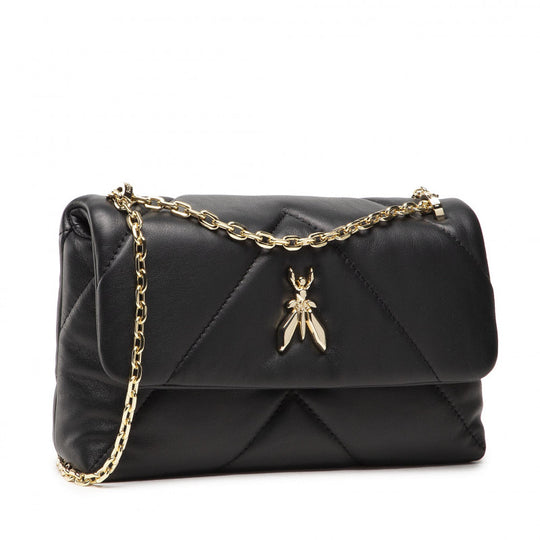 Borsa a tracolla Patrizia Pepe in pelle trapuntata e con imbottitura soft per un effetto morbido. Fly dorata e tracolla in catena. Misure: 24 x 15 x 8 cm.