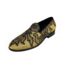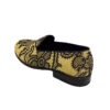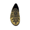 Mocassino in tessuto damascato oro e nero e suola in cuoio