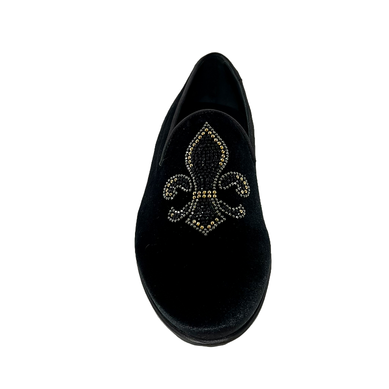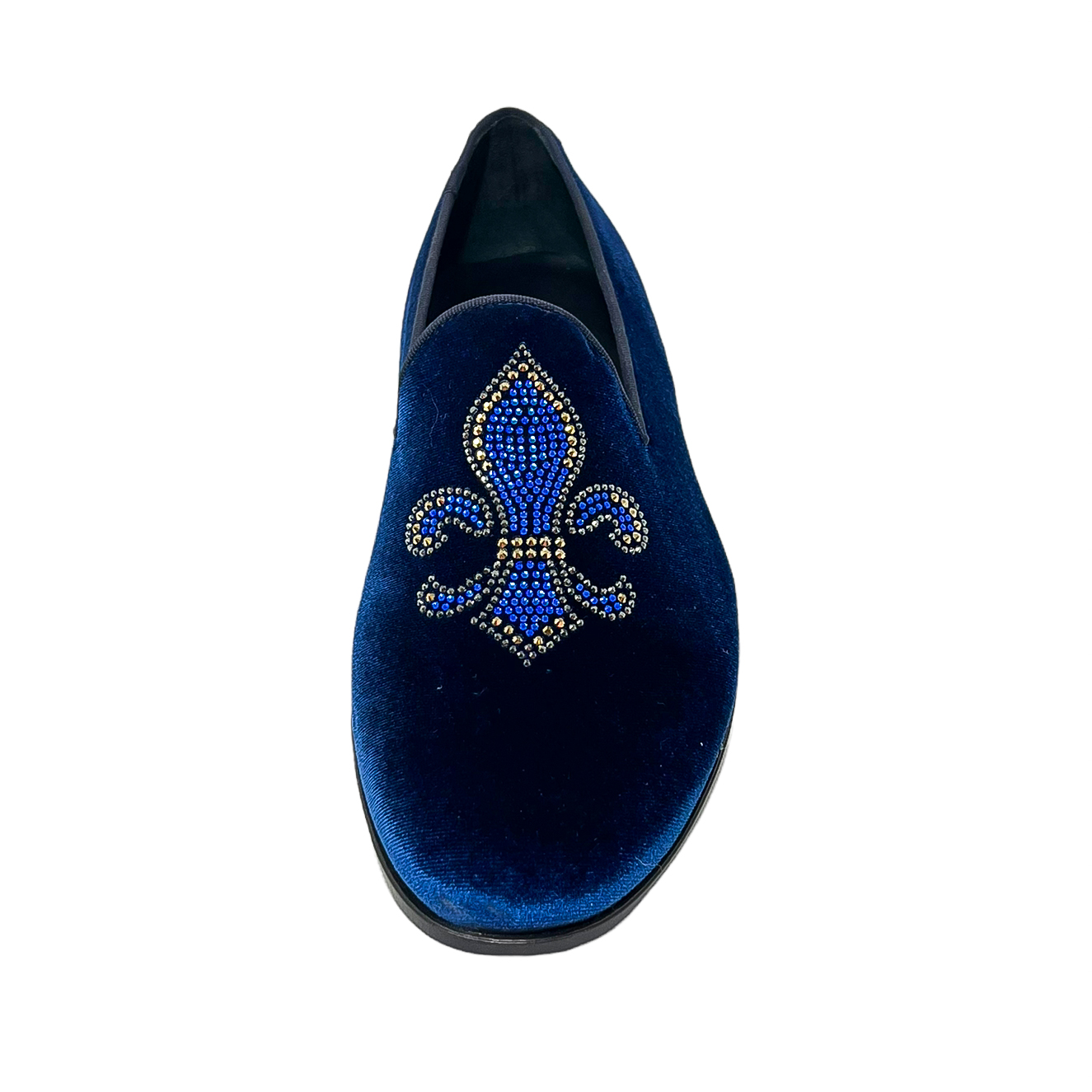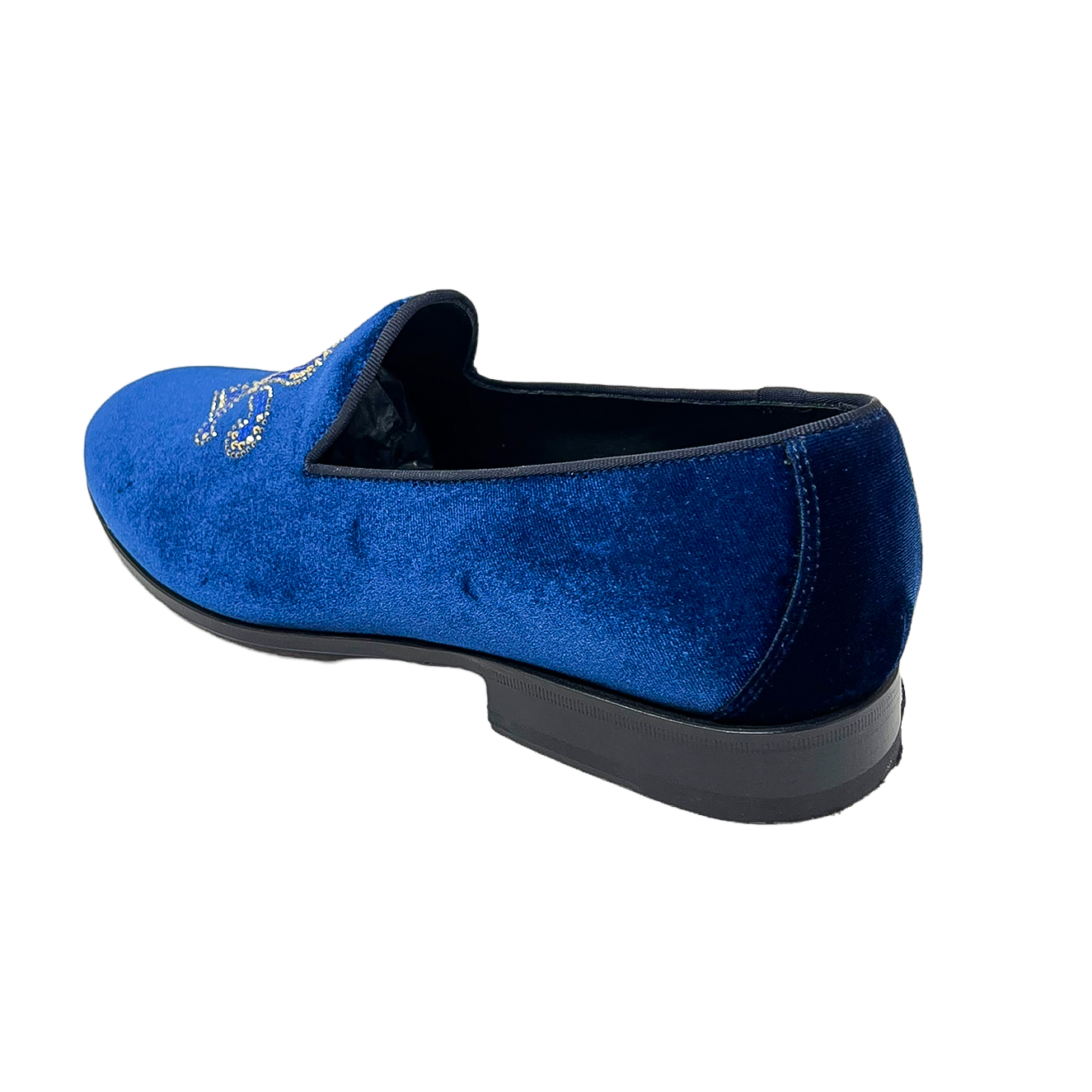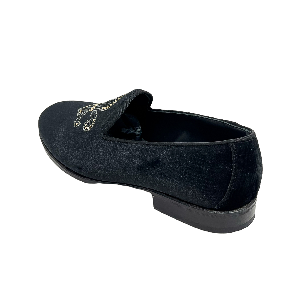 Mocassino in velluto nero o in velluto blu con corona in strass