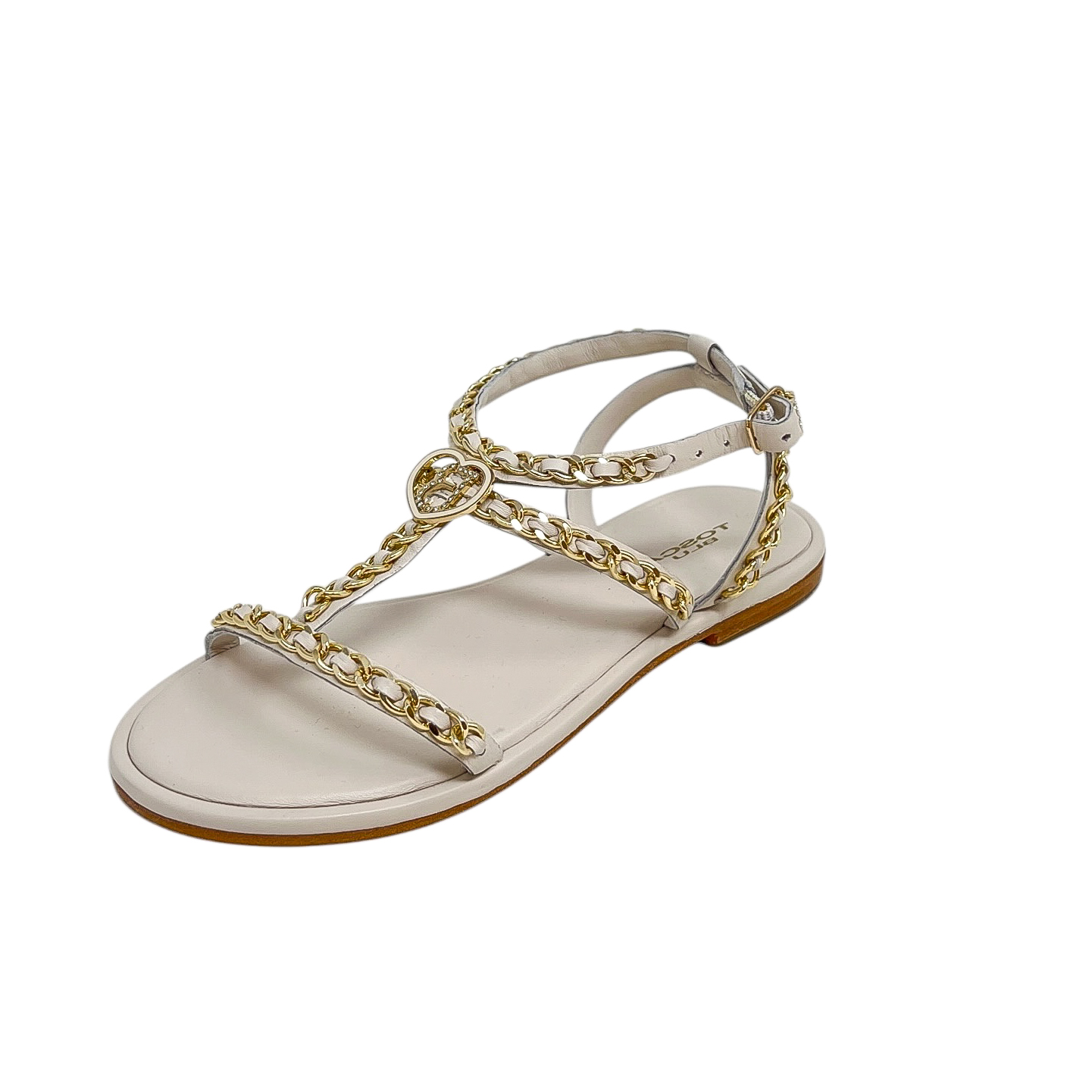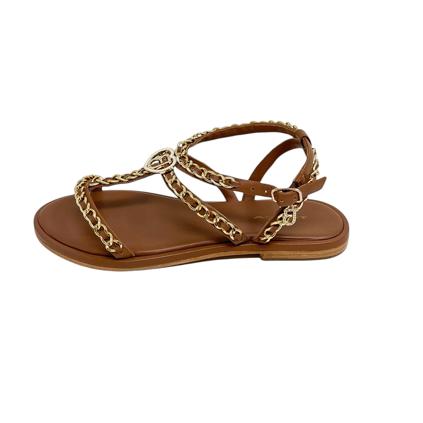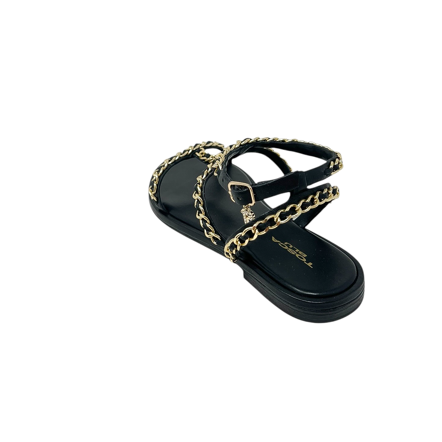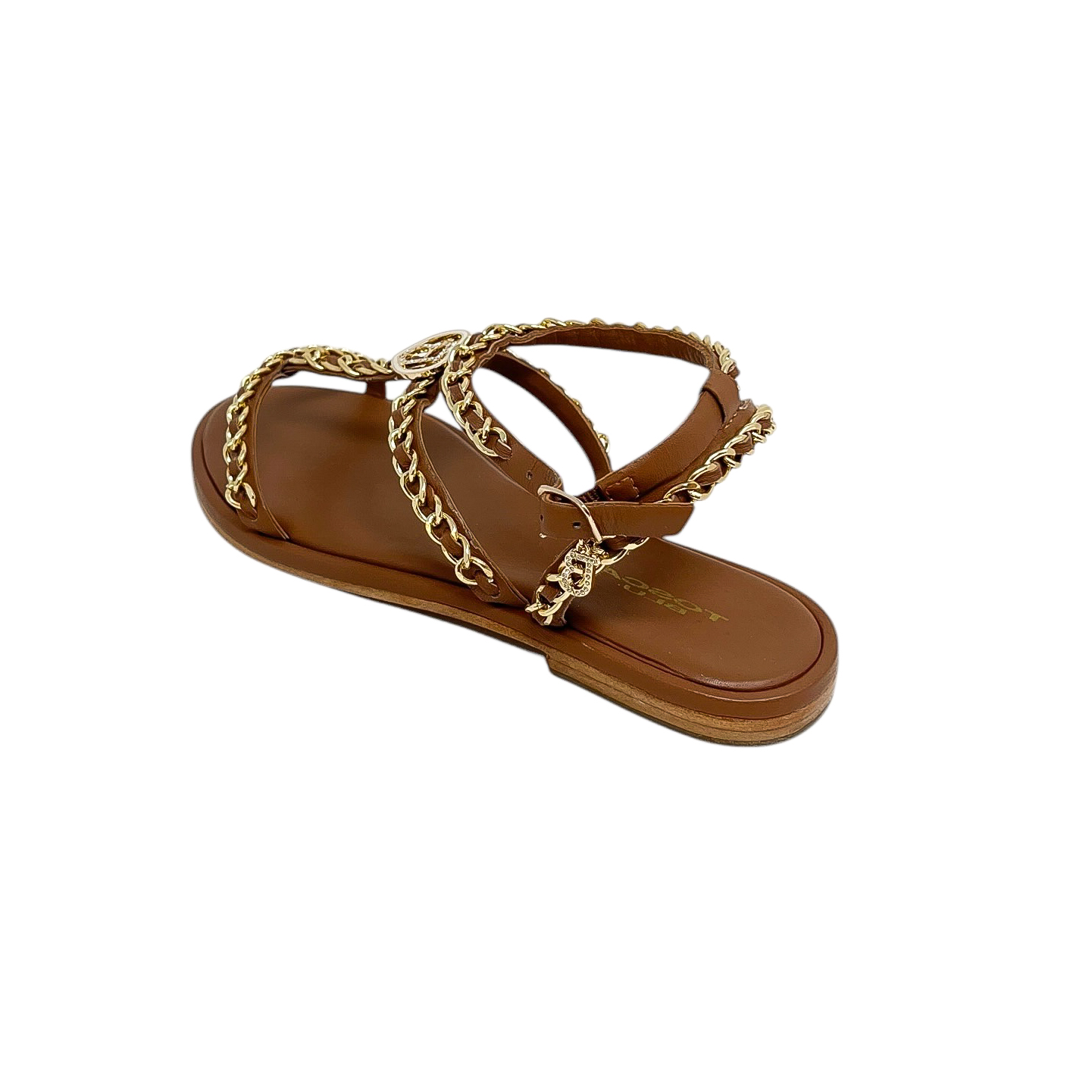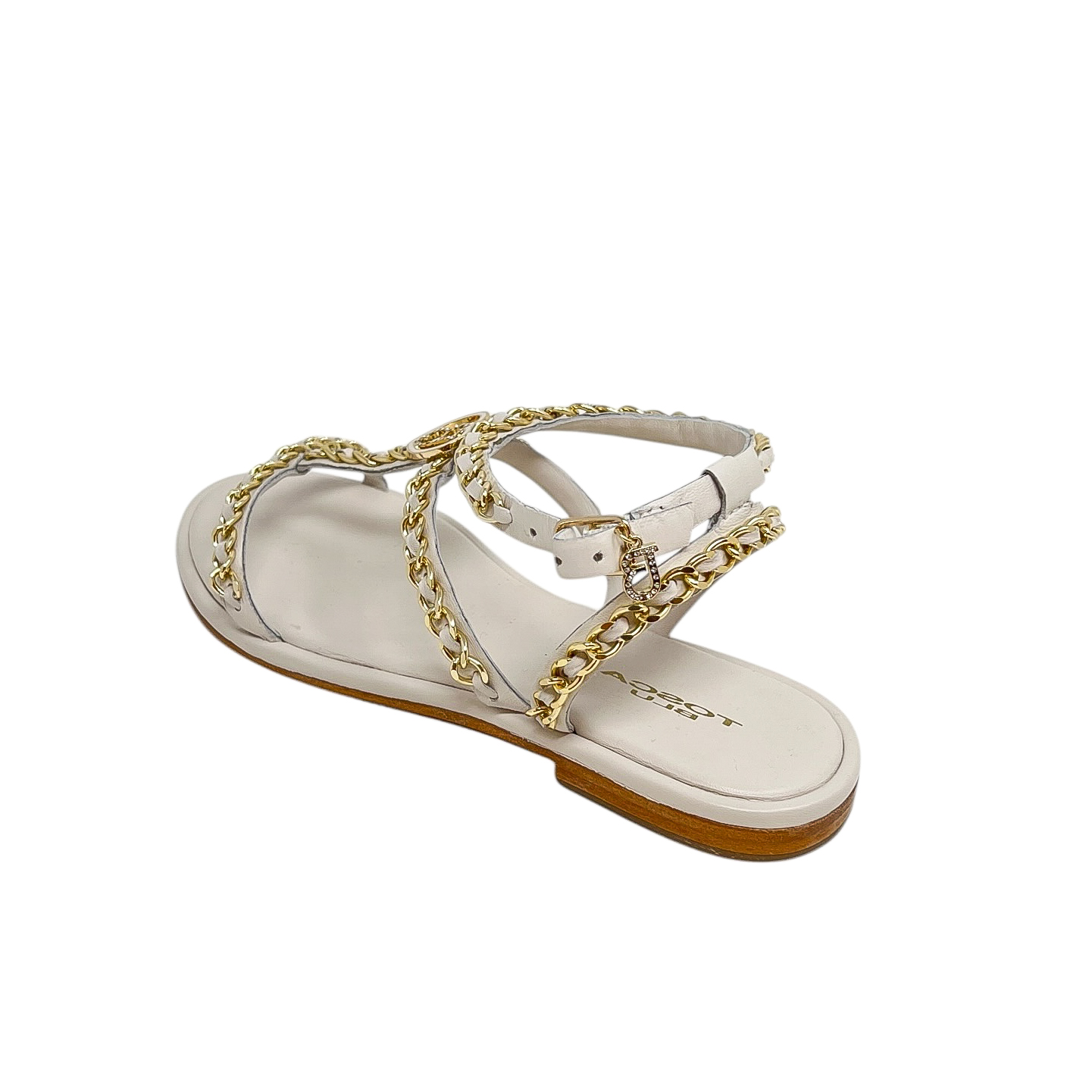 Sandalo in pelle bianca, nero o cuoio con catene dorate