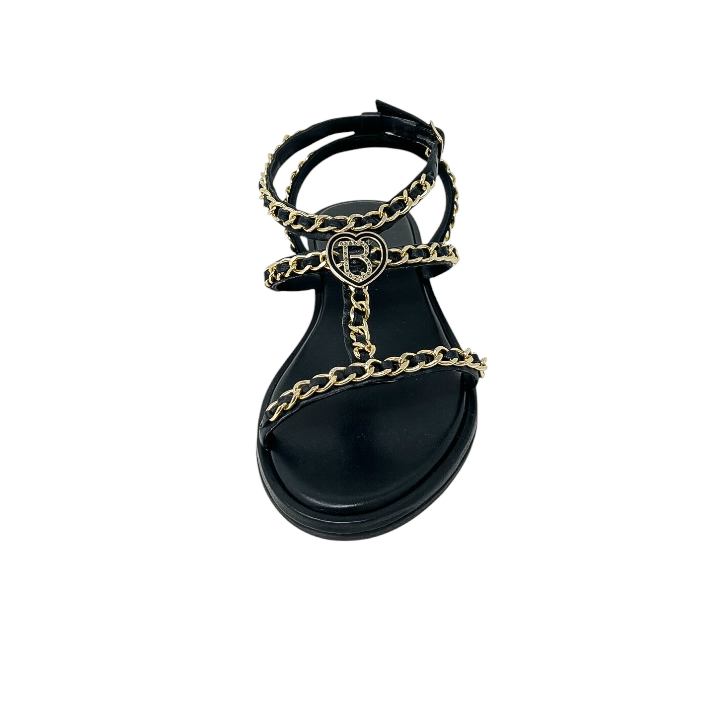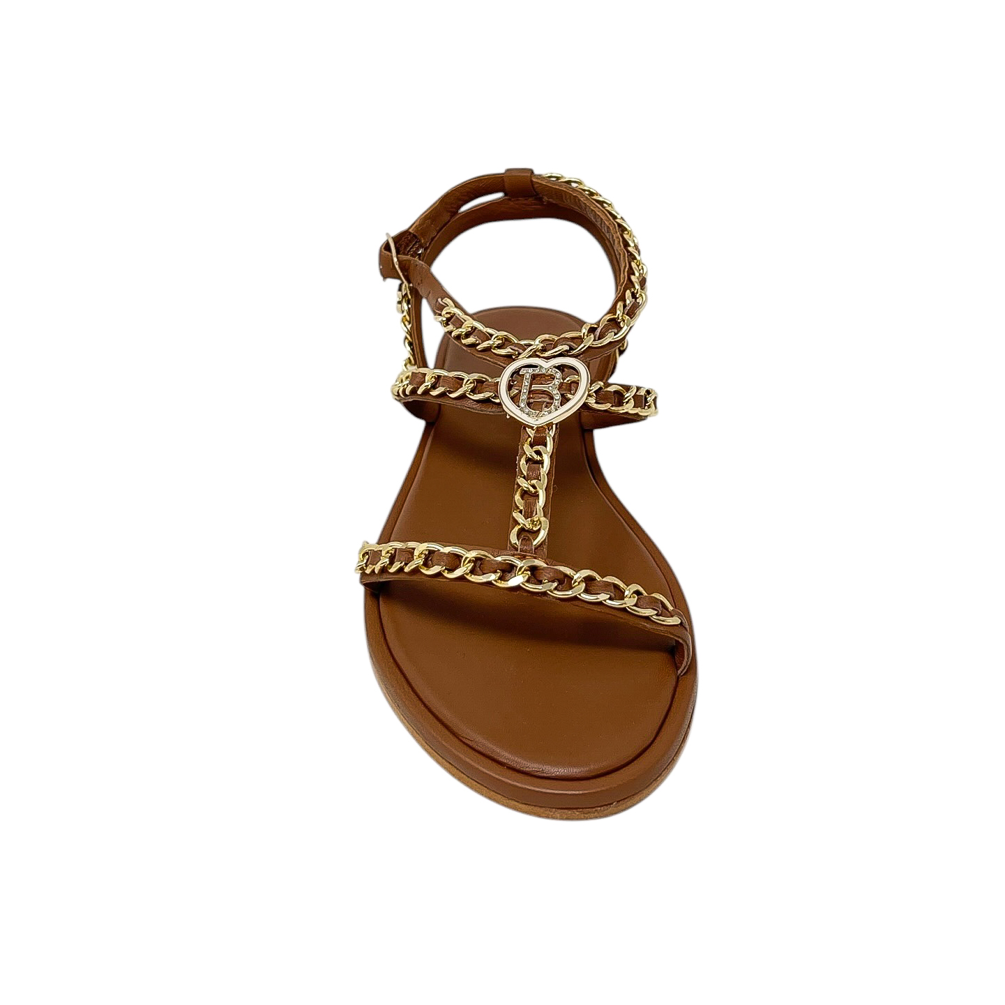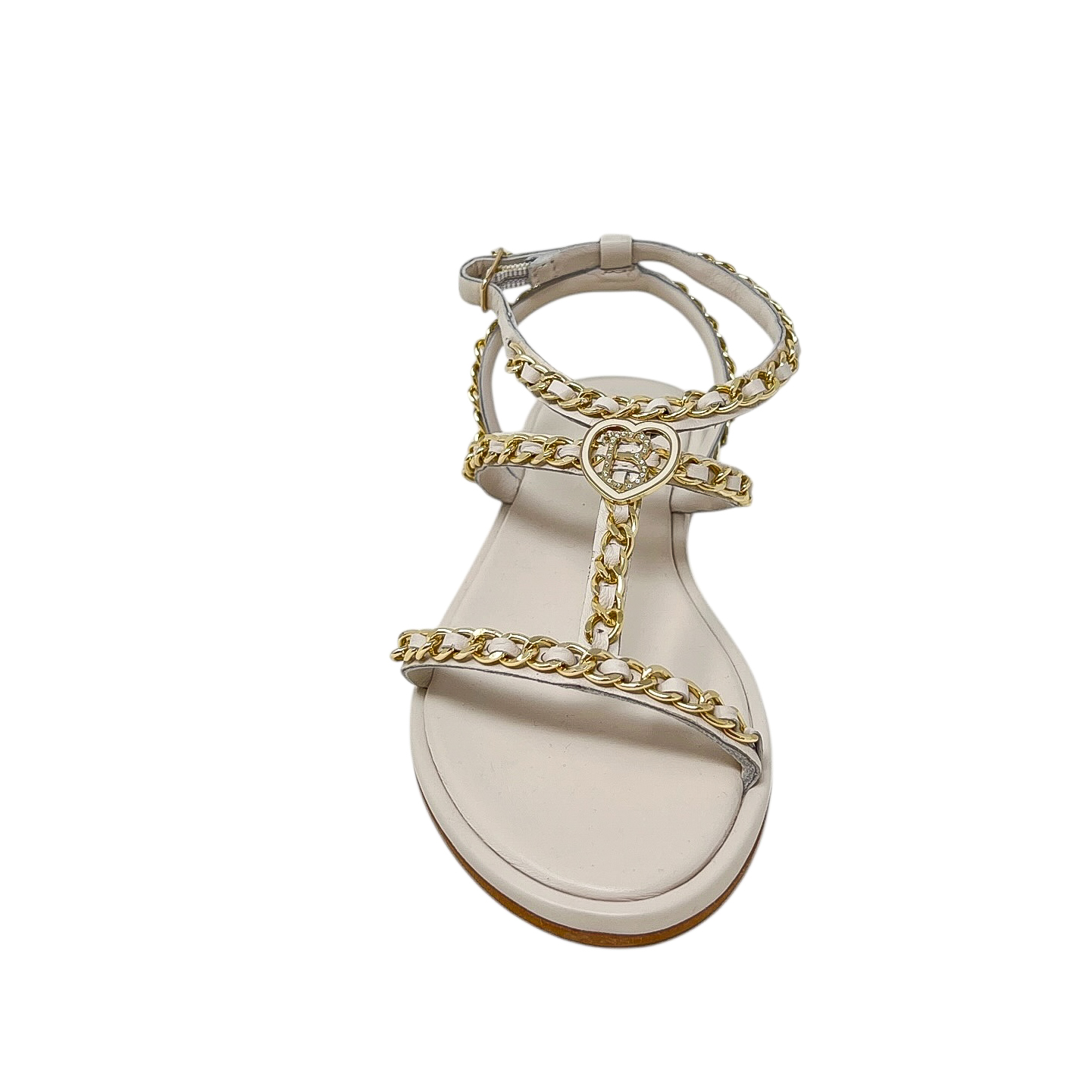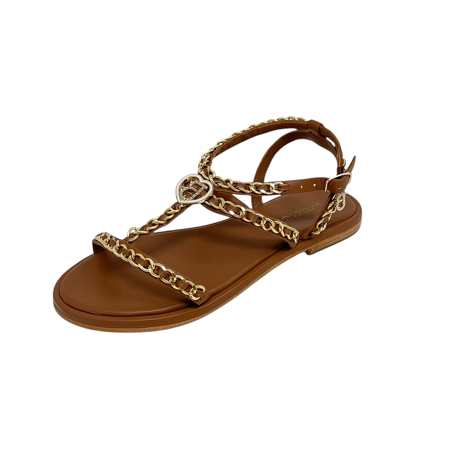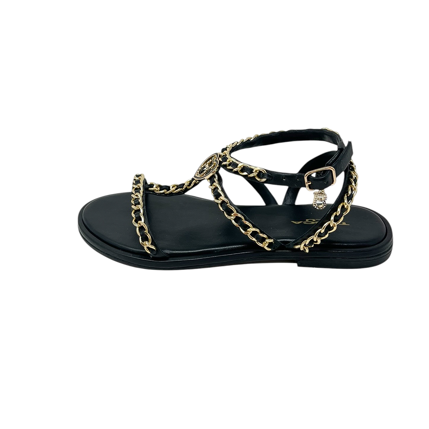 Sandalo in pelle bianca, nero o cuoio con catene dorate