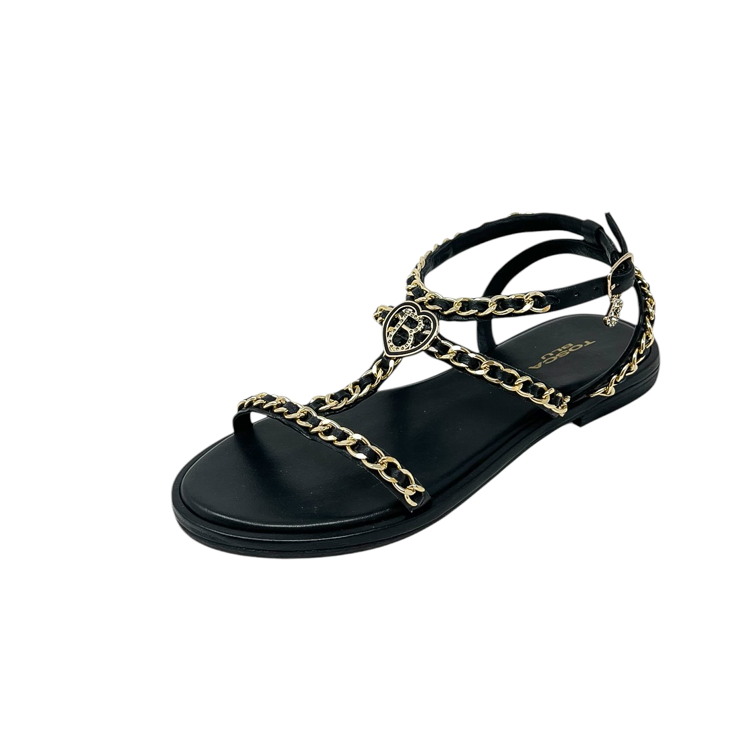 TOSCA BLU MARRAKESH231 SANDALO FASCIA CATENE CUOIO-NERO-BIANCO