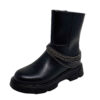 Stivaletto in pelle nera con accessorio alla caviglia e cerniera laterale