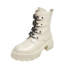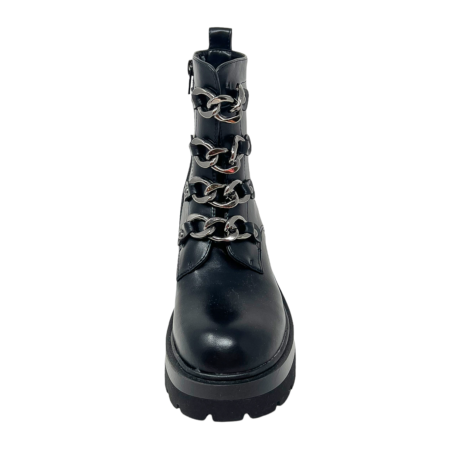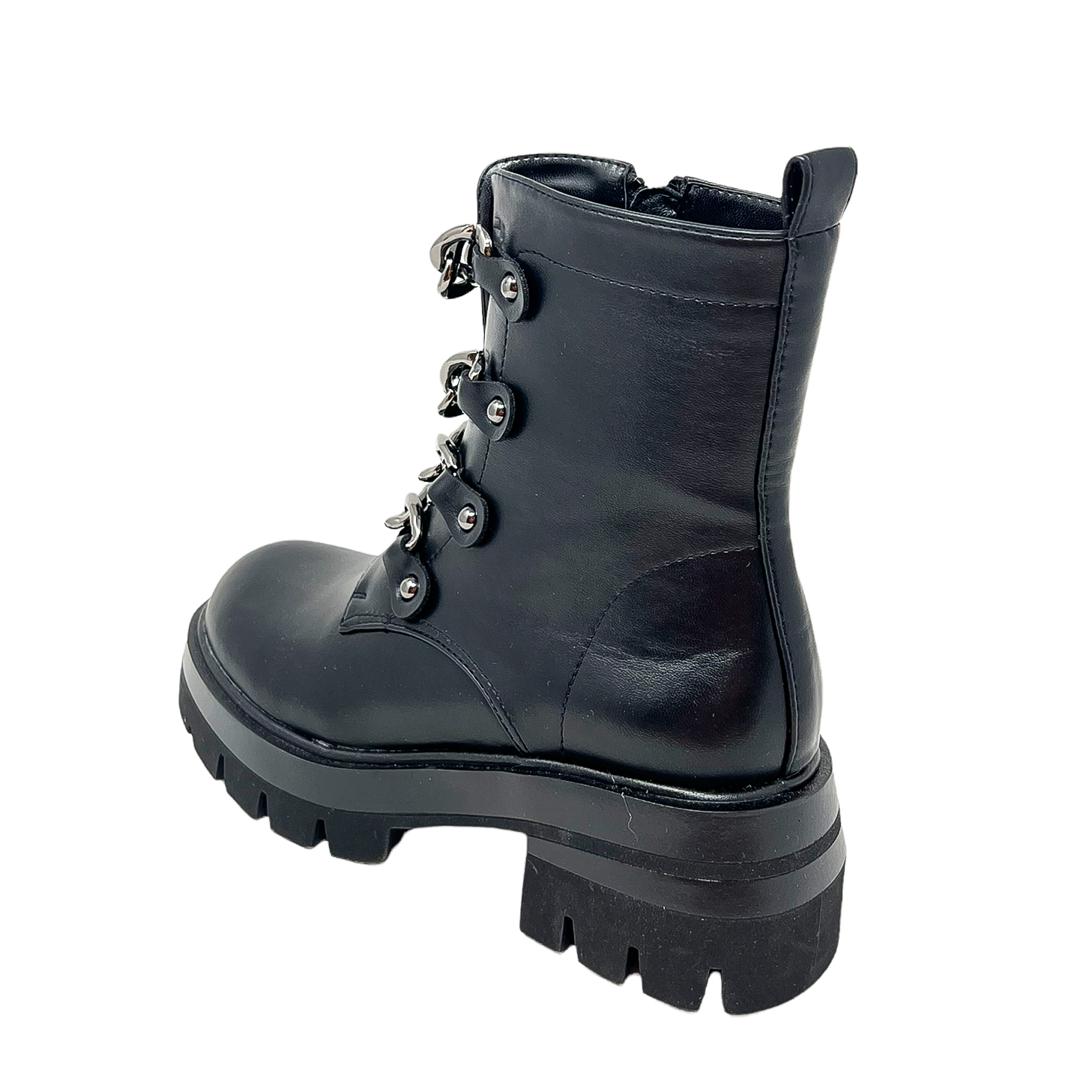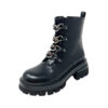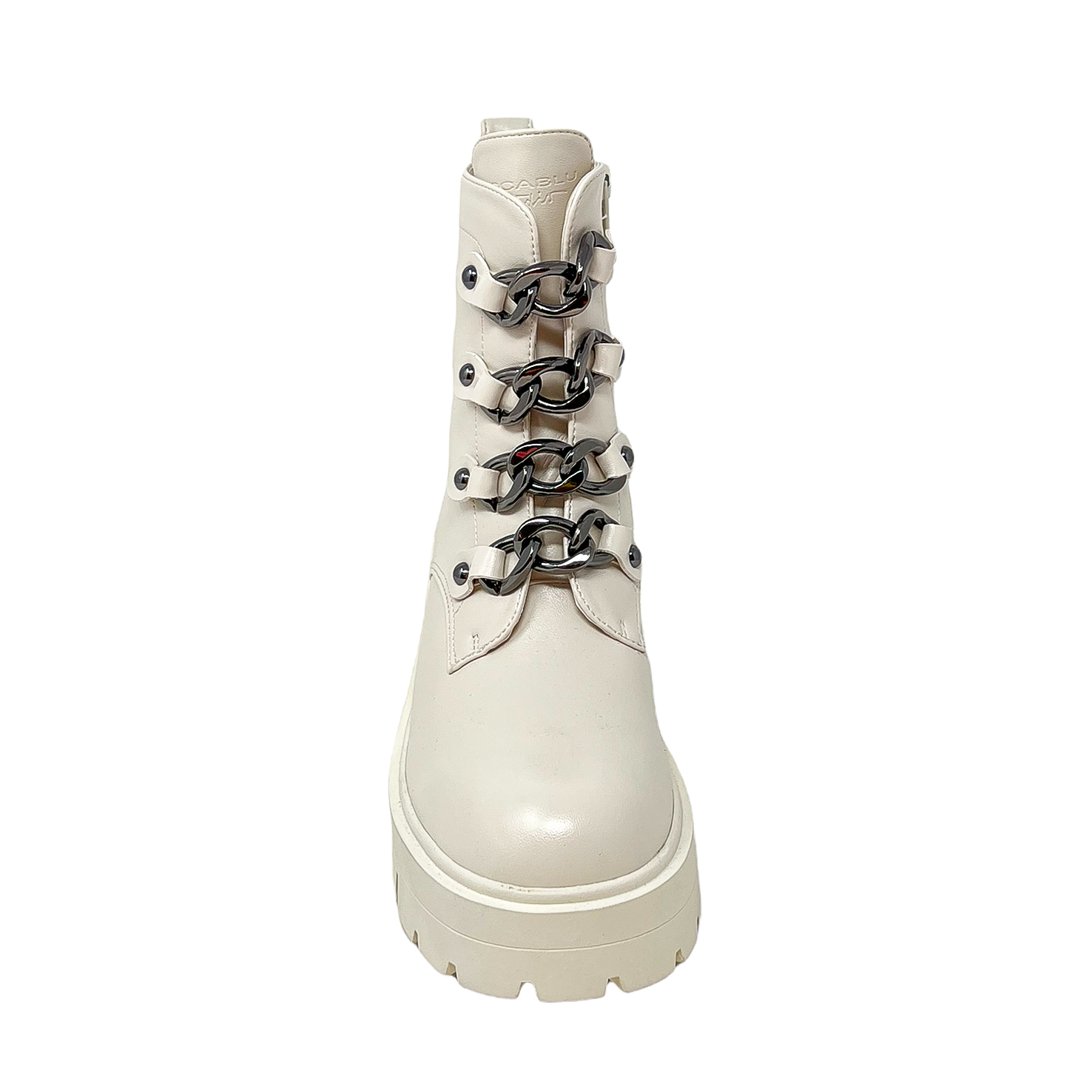 Stivaletto anfibio in pelle nero o crema con catene al posto dei lacci, cerniera laterale e suola in gomma