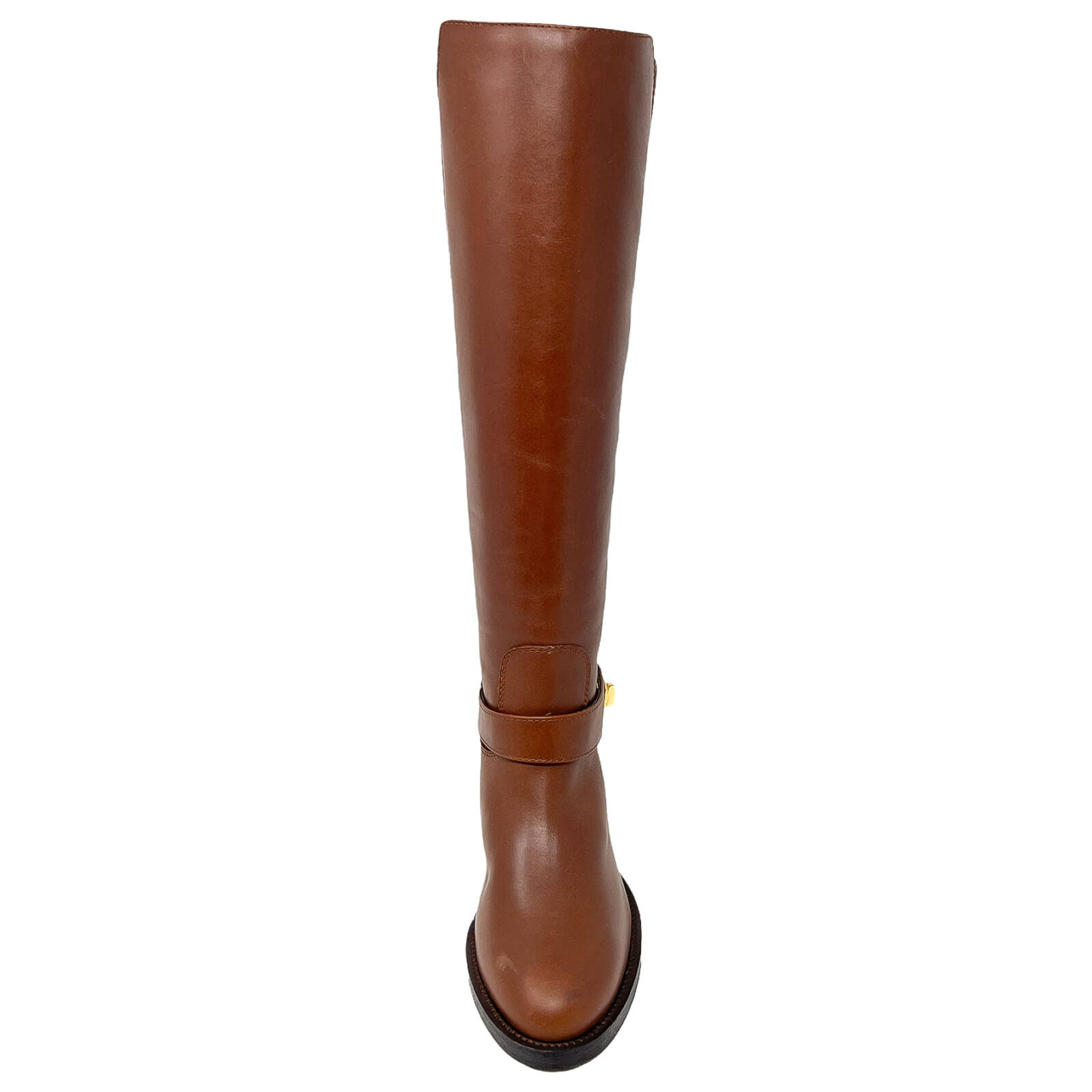 Stivale in pelle cuoio altezza ginocchio con zeppa interna di 4 centimetri e lucchetto laterale removibile