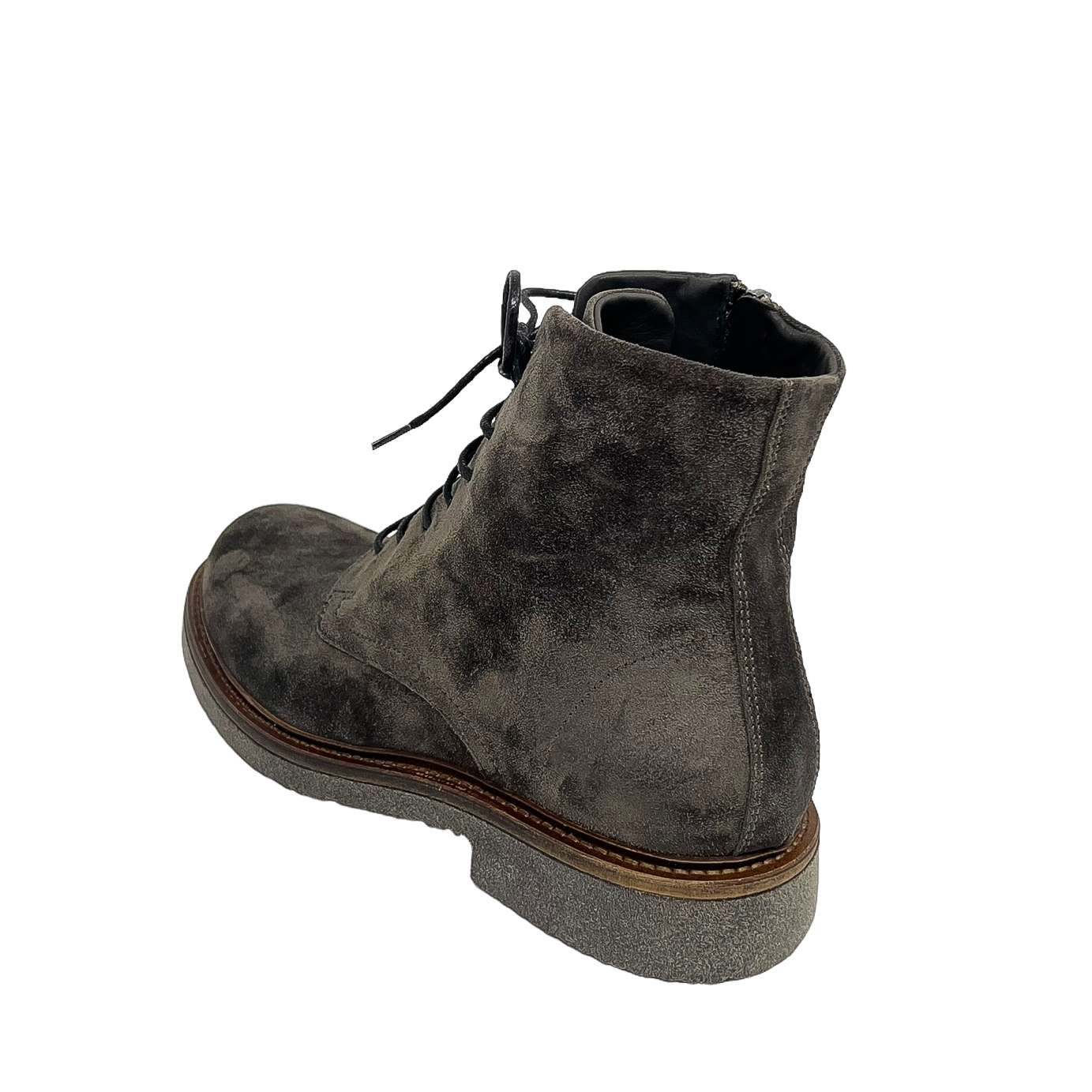 Polacco anfibio stringato in camoscio tortora con cerniera laterale