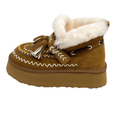 NAN-KU COUTURE DFH11 STIVALETTO PELO INDIANINO CAM CUOIO