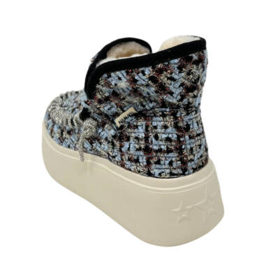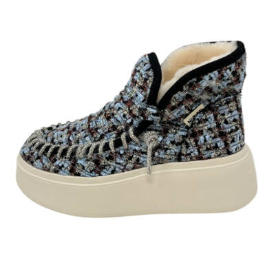 NAN-KU COUTURE DFH41 STIVALETTO PELO TWEED AZZURRO- BEIGE
